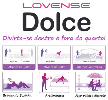 > Melhor maneira de fazer sexo à distância. O Lovense Dolce é o primeiro vibrador controlado remotamente pelo seu smartphone ou computador! O Dolce pode ser acionado a uma distância de até 12 metros pelo Bluetooth de seu celular ou a qualquer distância usando dois smartphones conectados ao aplicativo Lovense!